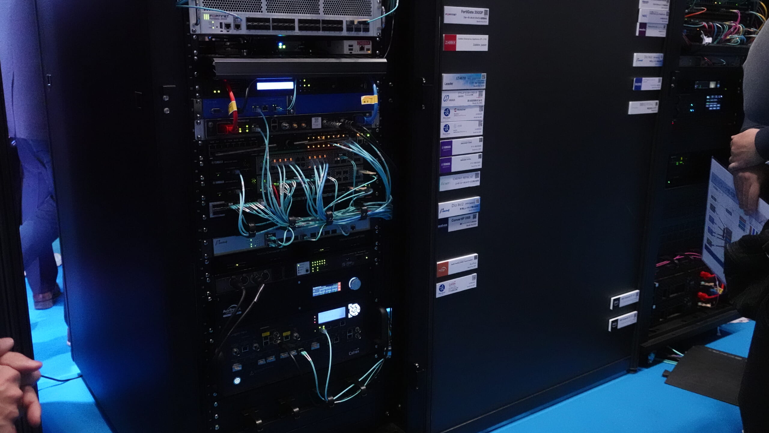 MoIPはST2022-7による二重化構成が基本となっています。このコーナーでは障害シミュレータ等を用い擬似障害を発生及び、復旧後の機器や信号にどのような影響があるのかを体験できるような動態展示を行いました。