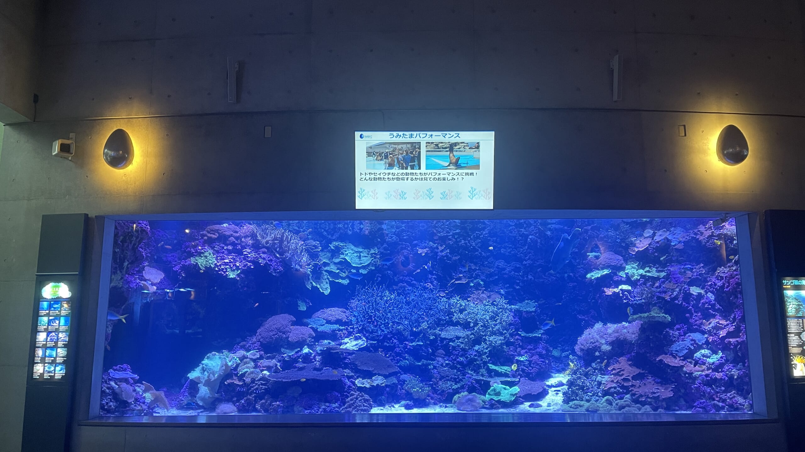 本製品は、サンゴ大水槽の上に設置された2台のディスプレイの表示に採用されています。