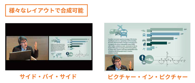 講義収録・配信の映像は、講師と、講義に用いる資料とを合成して使う事が一般的です。