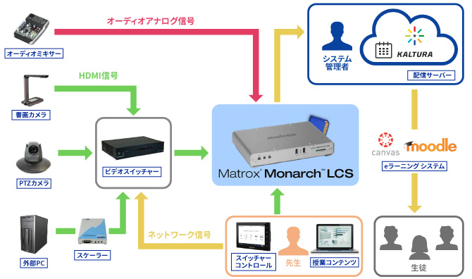 これからは、Monarch LCS 1つで講義の録画配信を実現する事ができます。