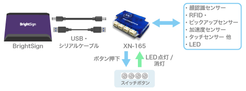 当製品は、当社取り扱い中のサイネージプレーヤー「BrightSign」と併用して、センサーの周り360度に存在する人や物体を検知し、サイネージコンテンツを切り替えます。複数のセンサーを接続できる『XNコントローラーキット』も同時発売します。