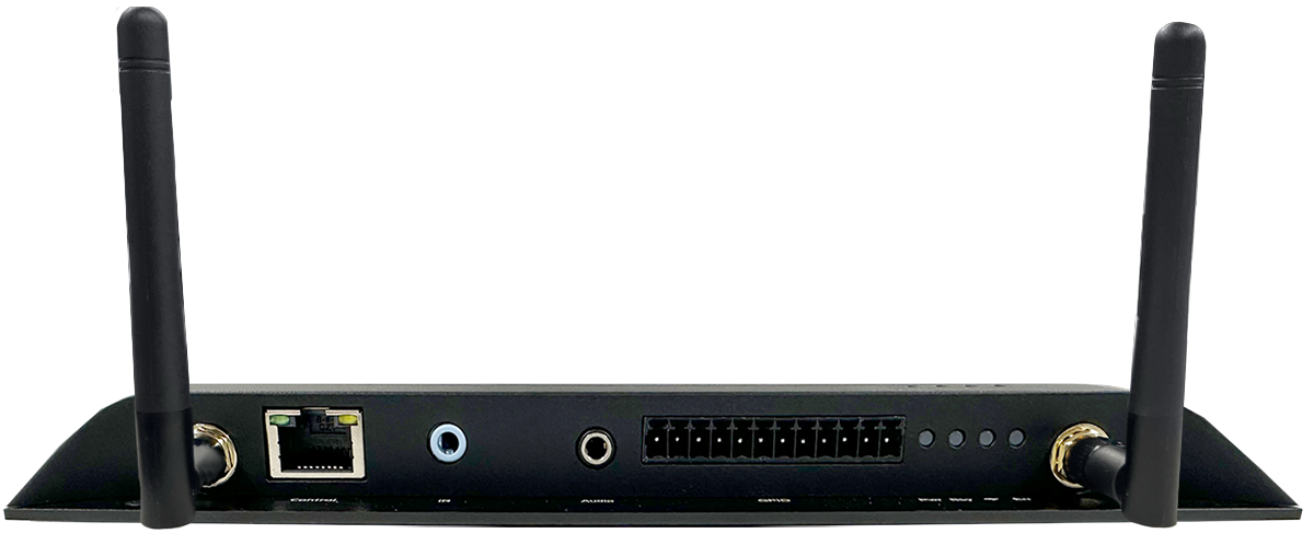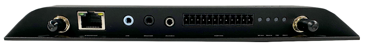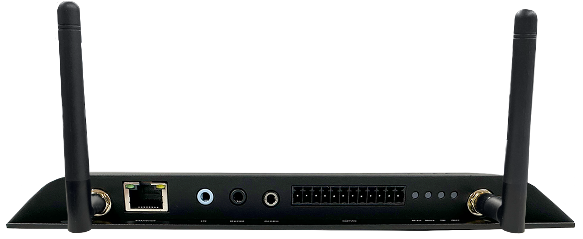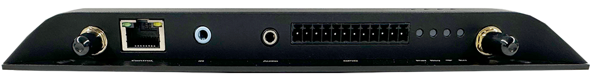 | ・WiFiアンテナ端子 x2 ・RS-232C端子 ・GPIO端子 ・オーディオ端子(デジタル、アナログ共通) ・ディスプレイコントロール(RJ45)端子※1 ・ステータスLED x4 ・IR端子 |