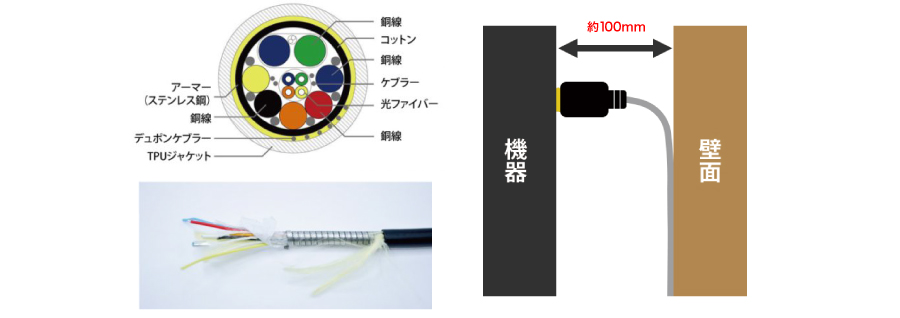 | ケーブル曲げ半径 | 29mm(常設時)、10mm(瞬間) | ||||