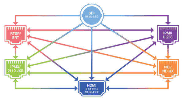 - SMPTE ST2110-22・IPMX・NDI・SRT・RTSP・MPEG-TSなどのプロトコルに対応