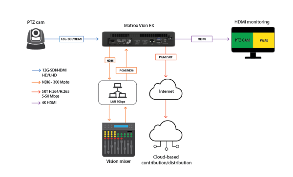 10ビット4:2:2 / 4:4:4 の高精細映像処理や、多様な入出力オプションを備え、放送、ライブプロダクション、リモートコラボレーション、クラウド IP ワークフローに最適です。