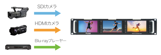 各ディスプレイにはHDMI、SDI、コンポジット入力端子を1系統ずつ搭載し、4K30pまでのHDMI、3G/HD/SD-SDI、コンポジットの入力信号に対応します。