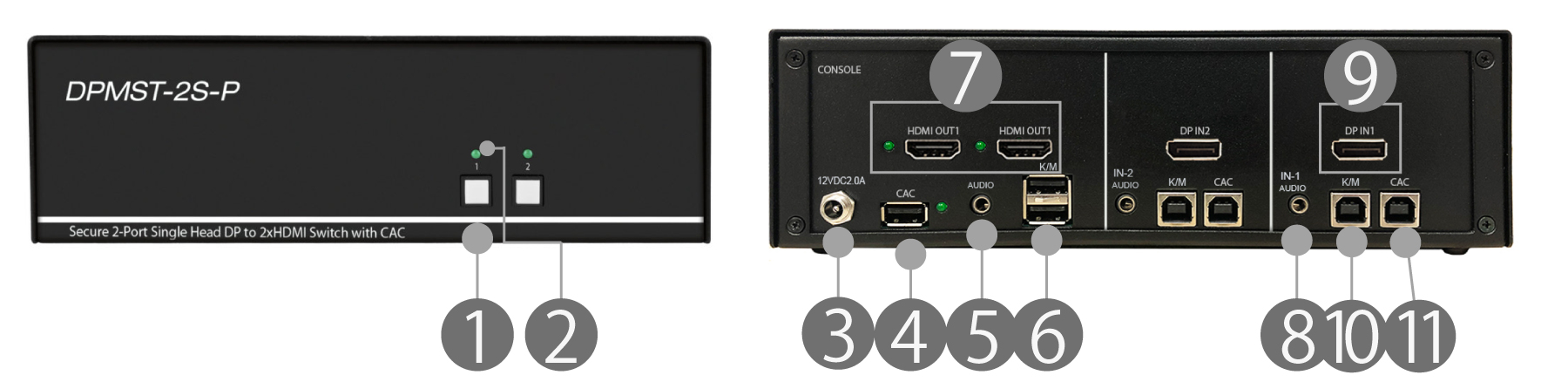2ポートKVMスイッチ型番:DPMST-2S-P
